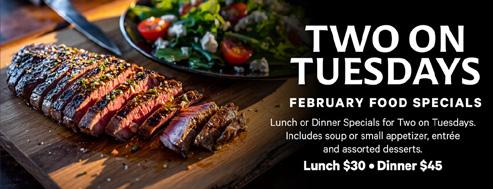 Between tastings, Sonoma Plaza offers no shortage of memorable places to dine, making Valentine’s Day feel indulgent from morning to night. Start the day with breakfast or lunch at Sunflower Café, a longtime local favorite known for its warm hospitality and comforting, flavorforward dishes — perfect fuel for a day of wine tasting. As evening approaches, the Plaza transforms into an inviting dining destination, with excellent options for a romantic or celebratory dinner. Valley Bar + Bottle Shop offers refined, seasonal cuisine in an intimate setting, while the historic Swiss Hotel delivers classic comfort with old-world charm. If you should stay for dessert, be sure to order their signature glarifee. B&V is a relaxed Italian steakhouse, and Oso brings bold flavors and creative plates to the table. Cap off the night with cocktails at The Beacon, where expertly crafted drinks and a cozy, convivial vibe provide the perfect final toast to a Valentine’s Day.