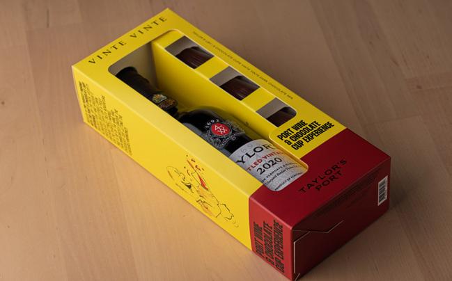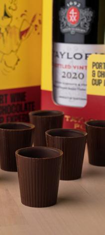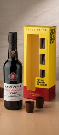 Taylor’s Late Bottled Vintage 2020 and Vinte Vinte 58% dark chocolare cups create the perfect pairing. The Port’s velvety texture and layered flavours enhance the chocolate’s intensity, revealing new dimenstions of taste.