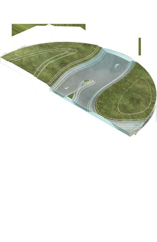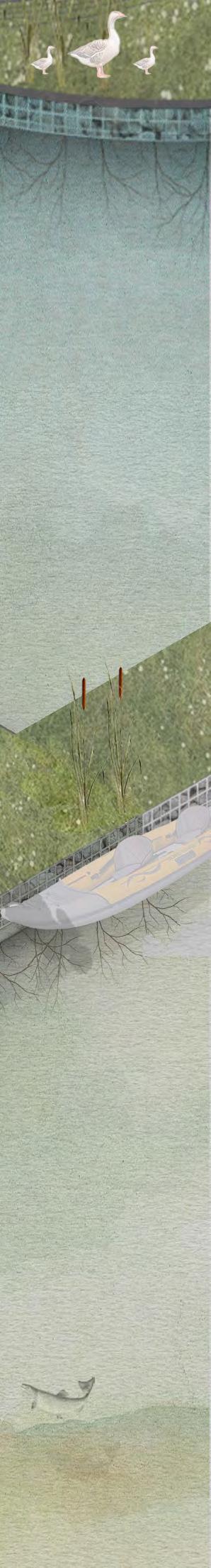 Once the river has reached capacity, the factory is transitioned into an exhibition space with each construction step displayed on the conveyor belt. The storage units turn into classrooms, and the island launch becomes a kayak rental + launch.