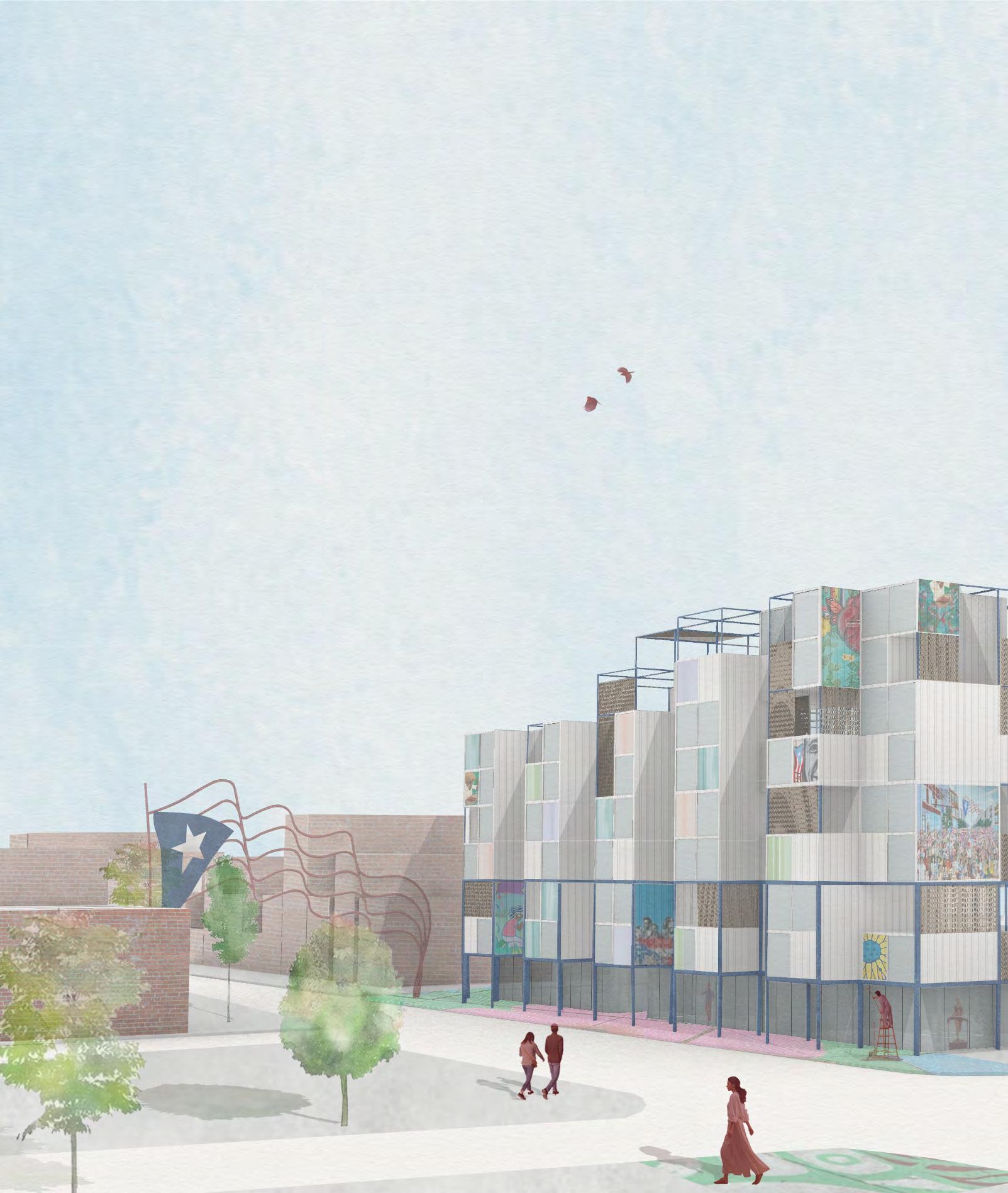 Artwork is instrumental within the Humboldt park community - as its presence increased over time so did pedestrian circulation and interaction with the space. It also functions as a guide, adorning points of access and transitionary spaces; this project seeks to continue these patterns, furthering the extent of Puerto Rican culture within the Chicago.