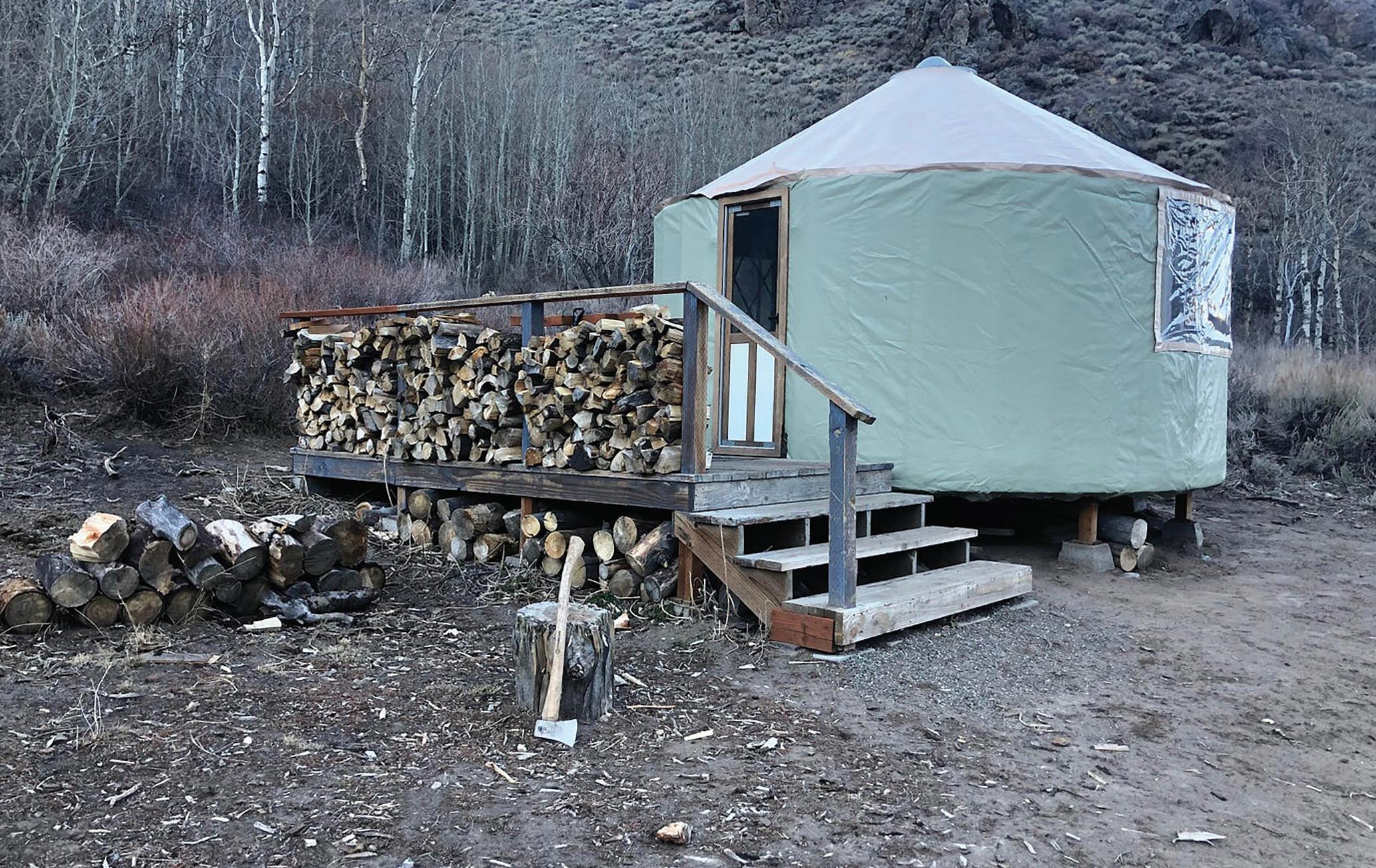 The yurt (below) is about two miles from the gate and takes about an hour to reach and includes creek crossings. The yurt is up November-May and is a pack-in, pack-out, and is made possible through the volunteer efforts of the Northern Nevada Recrecation Coalition.