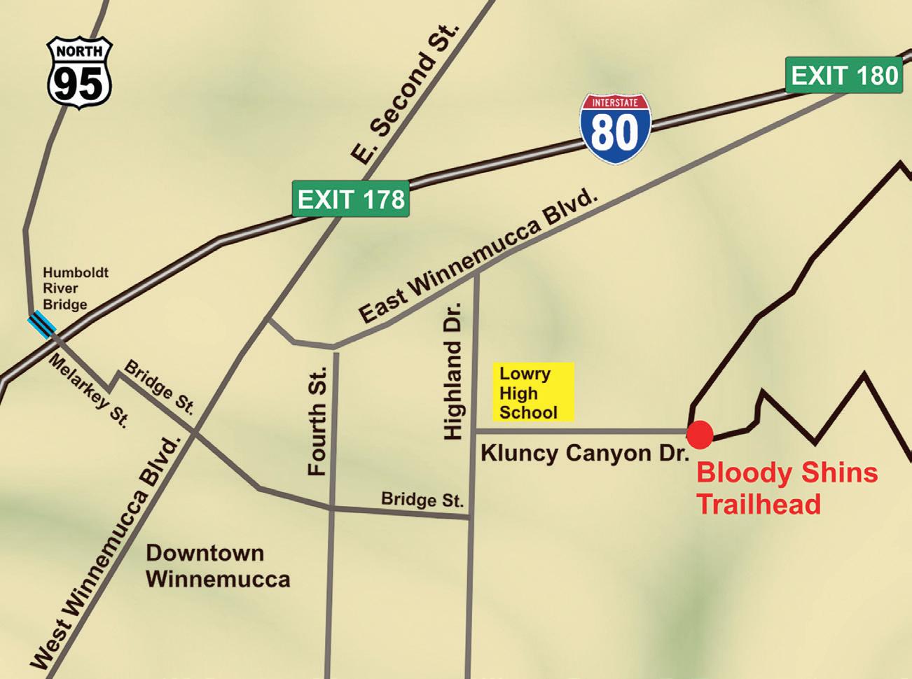 In addition to the Bloody Shins Trail, the Sonoma Mountains (the range to the East of Winnemucca) offers old pack routes, cow trails, and Jeep trails crisscrossing the sagebrush strewn flanks of the hills.