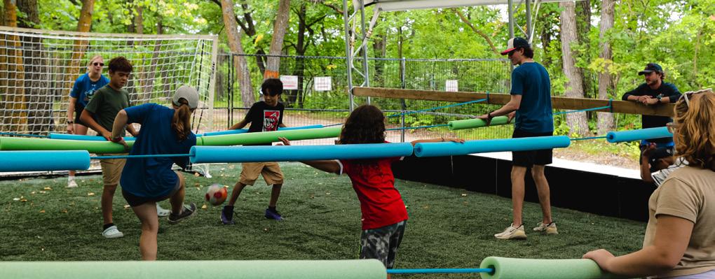Perfect for a game of human foosball or soccer, a covered structure with suspended bungee cords and a turf surface introduced unique new activities thanks to funds raised by the Travis Price Classic Golf Tournament.