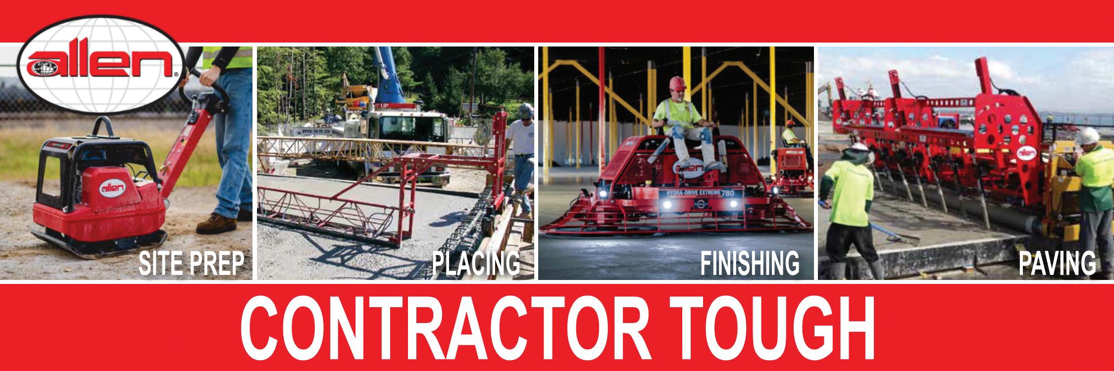 Concrete equipment—Buckets, buggies, core drills, grinders, grout pumps, screed, vibrators