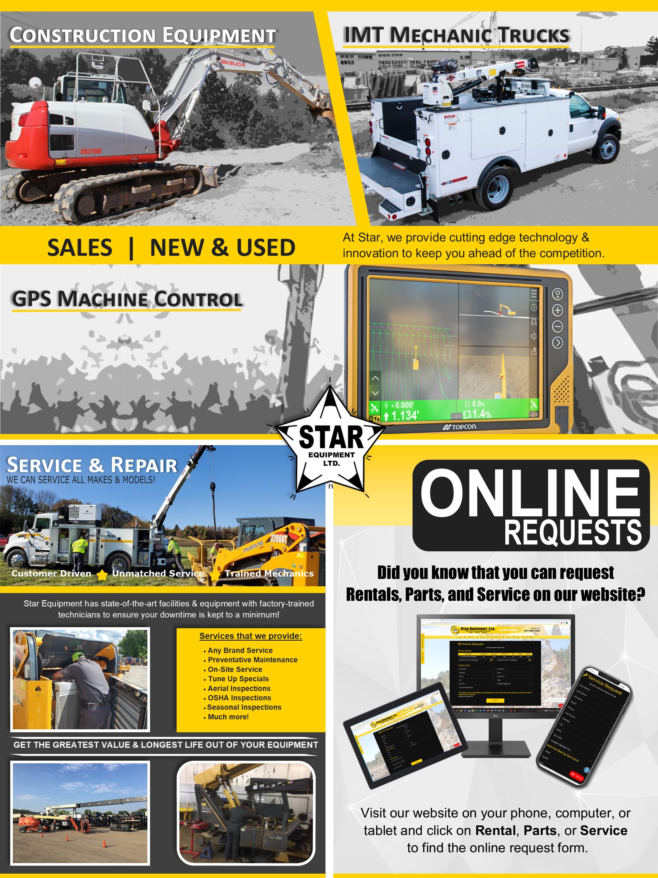 Star Equipment wants to provide each customer with safe, dependable and ready to use equipment to do their job. Customers returning equipment damaged, outside of normal wear will be billed for repairs. Dented sheet metal, bent booms, broken glass, cut tires are a few examples of billable repairs. SAVE MONEY AND TREAT THE EQUIPMENT AS IF YOU OWN IT. Rent continues until repairs have been made.