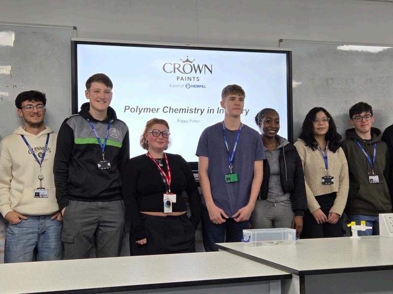Former Winstanley student Poppy Potter returned to College to deliver a Polymers in Industry workshop for first year Chemistry students. Currently completing a degree apprenticeship with Crown Paints, she shared detailed insights into how polymers are used in real industrial applications, clearly linking classroom theory to careers in materials science, manufacturing and product development. Students also carried out a practical experiment creating polymers using borax and PVA glue, reinforcing their theoretical learning through hands on application and helping them to see the real world impact of what they study.