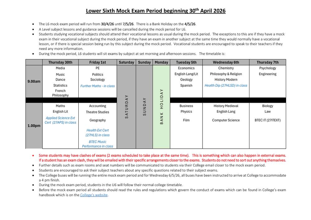 Our Lower Sixth exams begin on Thursday, 30 April. If you have any questions about your upcoming exams please get in touch with your Personal Tutor or the Exams team