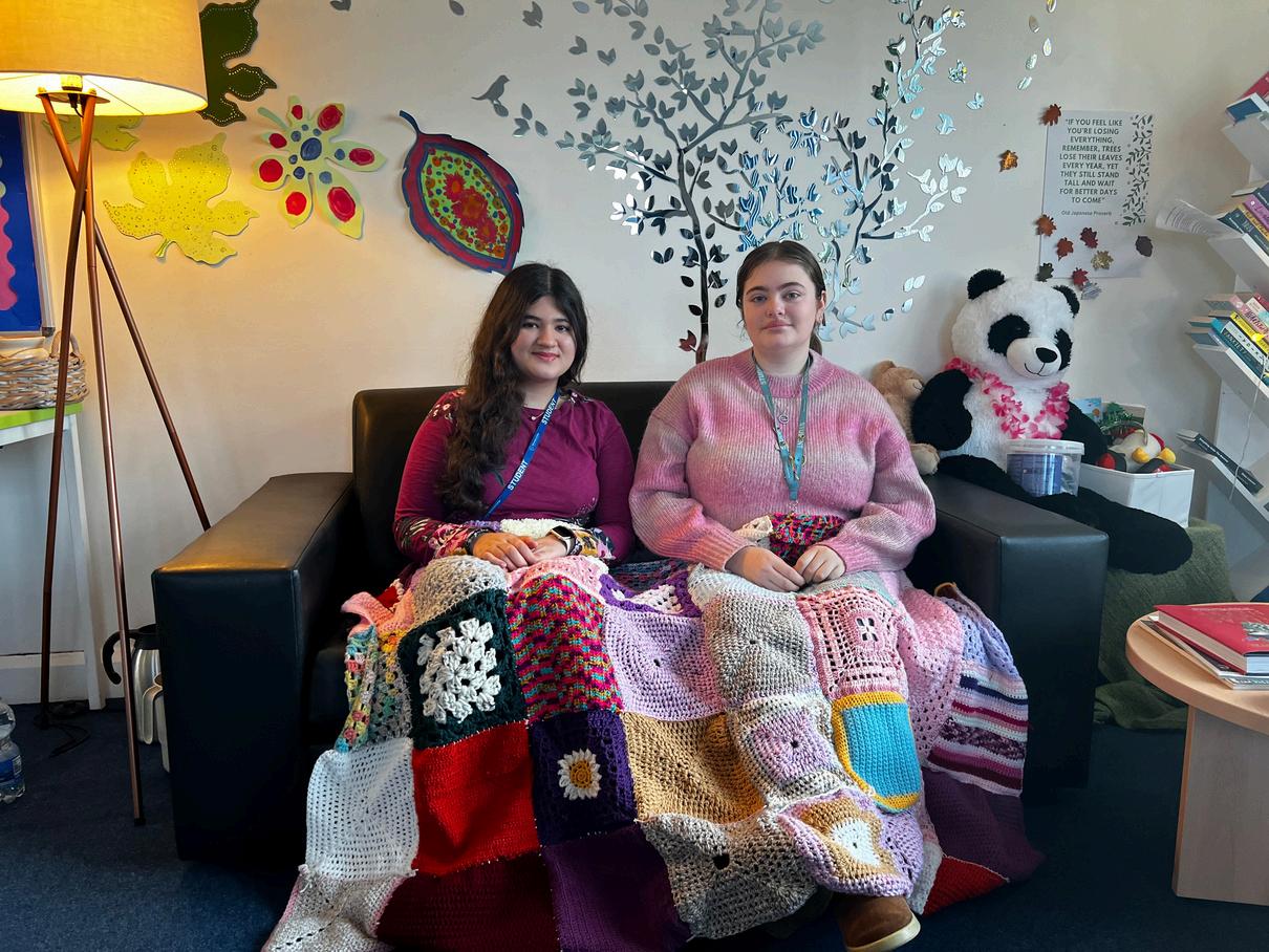One of the most meaningful projects this year has been the creation of a crochet ‘hug blanket’ for the Nurture Room. The project was led by this year’s ‘Big Knit’ student and Nurture Room lead, Malaika Balock, with support from last year’s lead, Hollie Burrows. Staff and students from across the College contributed crochet squares, which were then combined to create the finished blanket