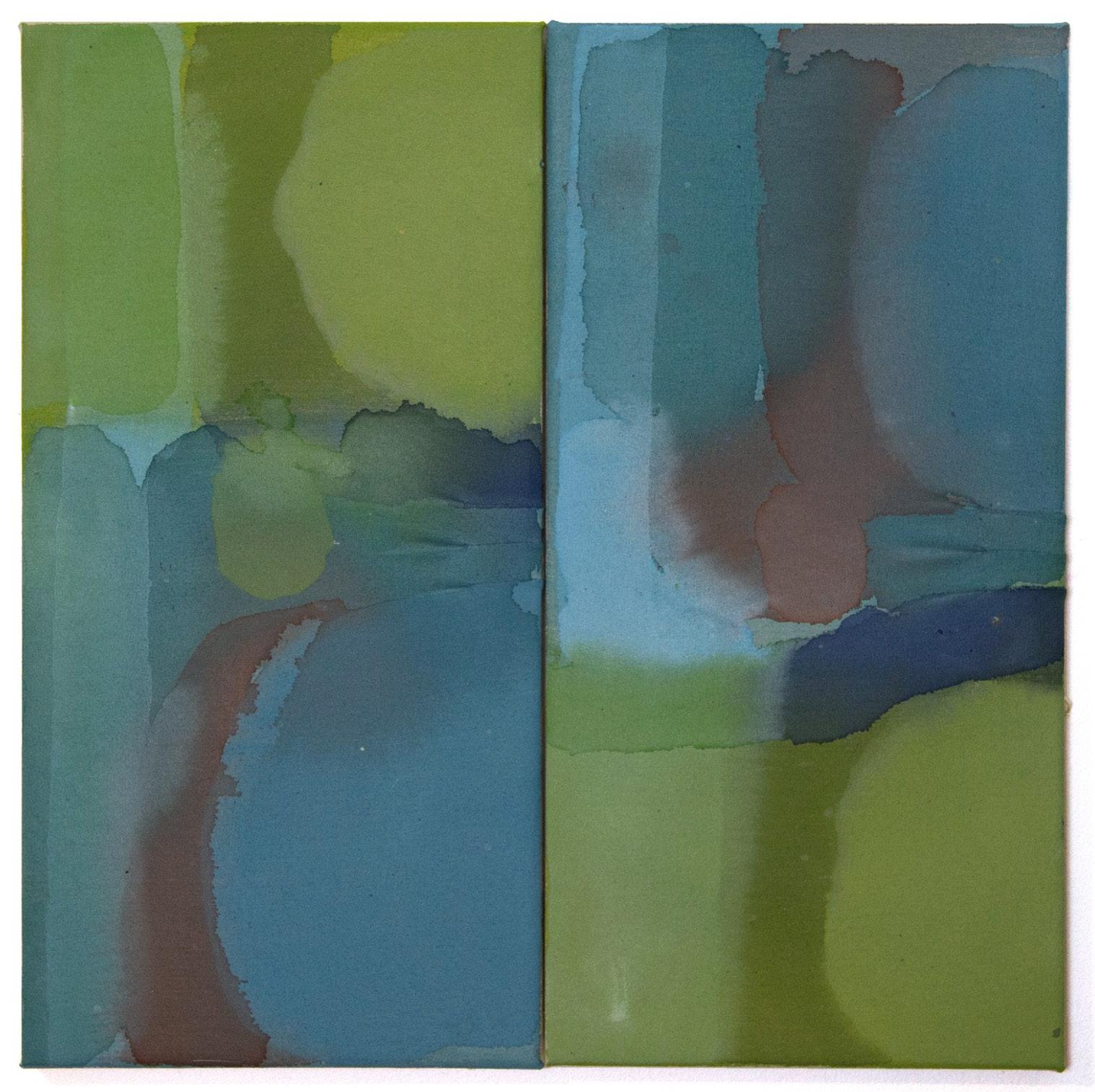 e In Twins, Park inverts painted canvases, exposes underlying structural components, and fuses gridded sections of fabric. While each canvas duo expresses gaps, divisions and differences between the two, they are of equal size and shape to their counterpart. As the canvases mirror one another, Park interrogates the surface as a window or partition, functioning as a mechanism for shifting perspectives.