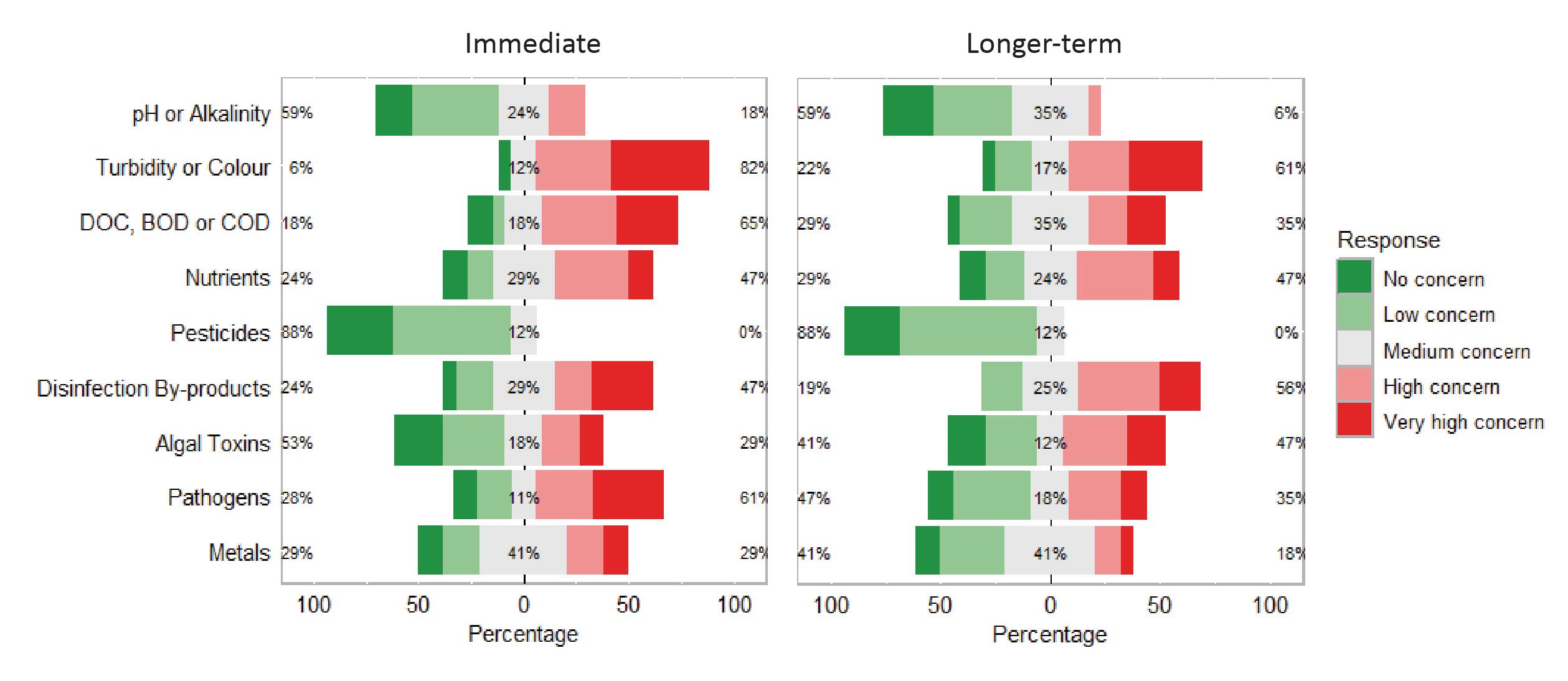 Respondents were asked about their immediate and longer-term water quality concerns, and to rank their level of concern for the key analyte classes identified (Table 1).