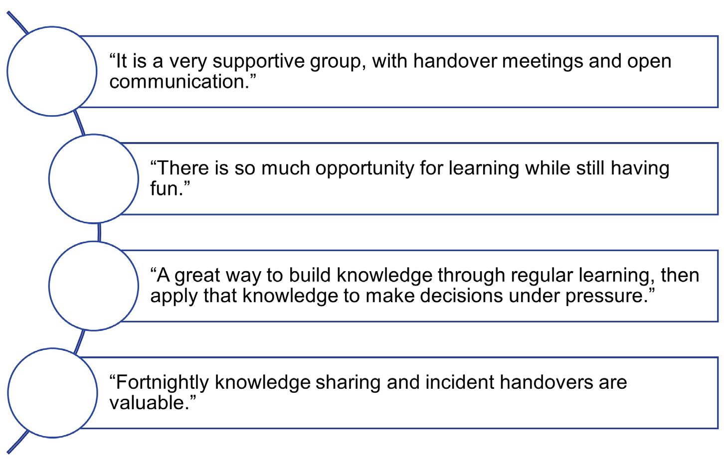 This situation demonstrates the importance of having confidence in your team culture. The criticality of this support is highlighted in the statement ‘it was a good team effort that [the duty operator] was able and willing to answer the phone and come back in after he'd finished for day. And I was much appreciative of his extra knowledge of the specifics of this site’.