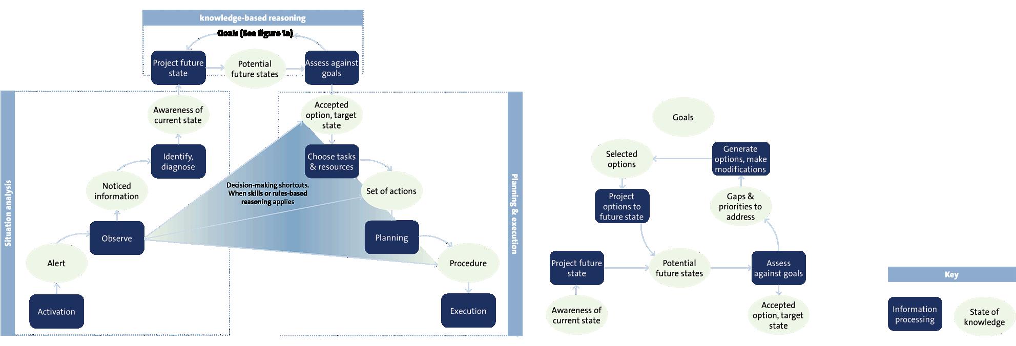 Figures 1 and 1a show the modified DL Template, with the ‘state of knowledge’ (i.e. the already learned and ‘known’ information) shown as ovals, and the ‘processing of new information’ as rectangles. The modified DL Template decision-making process starts with situation analysis, moves through knowledge-based reasoning at the top, and then down the righthand side (planning and execution), as shown by the arrows.
