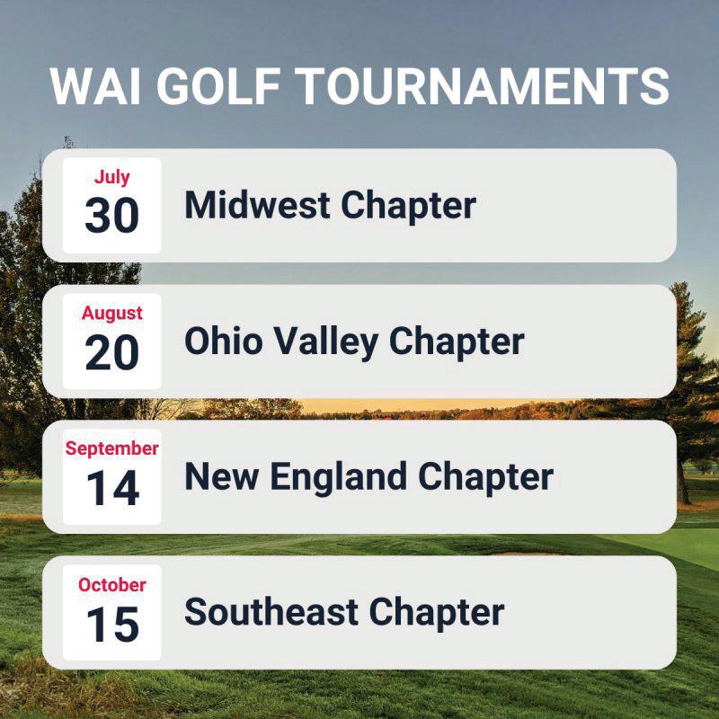 Four WAI chapters have their dates set for tournaments. It’s never too early to make time to hit a bucket or two of golf balls to get in the mindset for WAI Chapter golf tournaments. The collective chapter golf tournaments bring together professionals from the wire and cable industry for a day of camaraderie and sportsmanship.