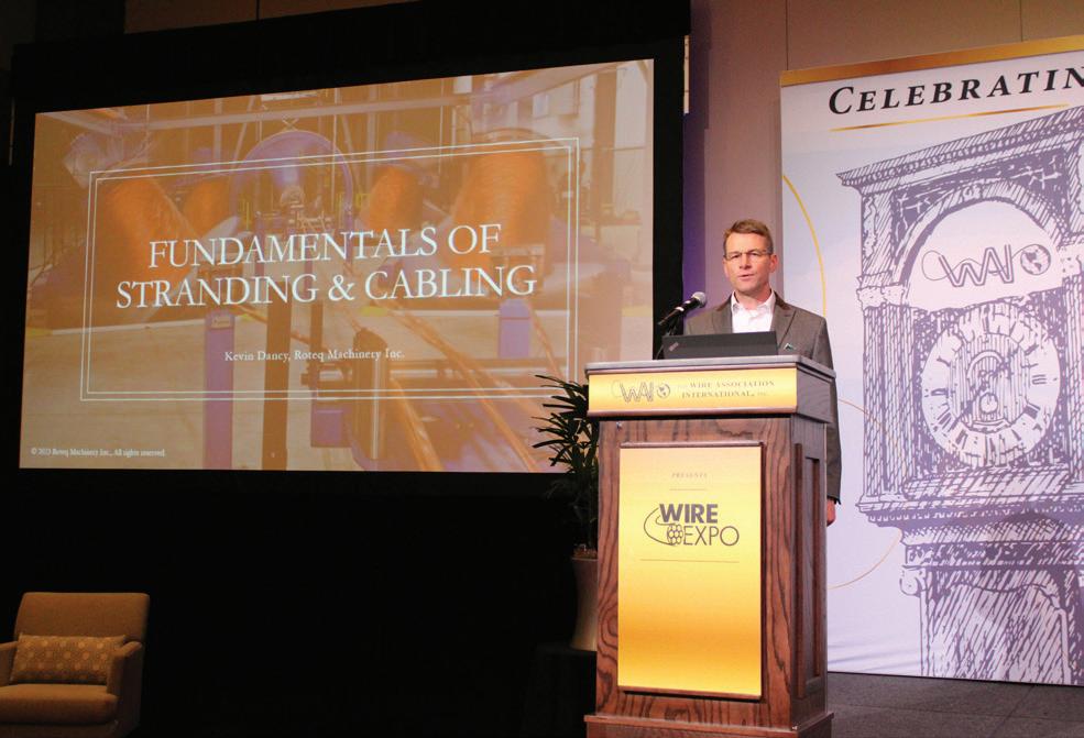 In 2024, Roteq Machinery’s Kevin Dancy presents his session on stranding and cabling at WAI’s Fundamentals course.