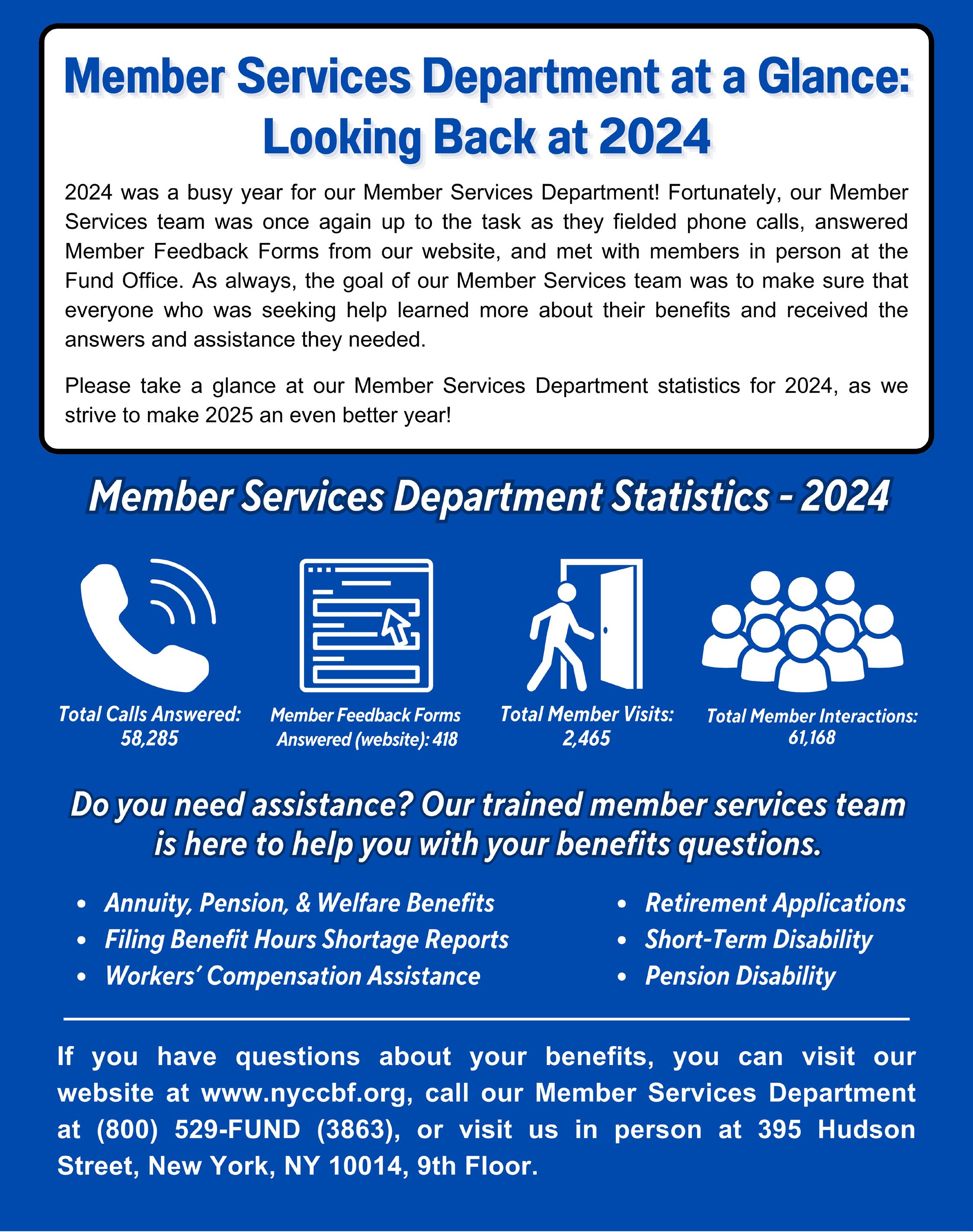 If you have questions regarding logging into the Member Portal or filing benefit shortages, please contact our Member Services Department at (800) 529-FUND (3863) or (212) 366-7373.