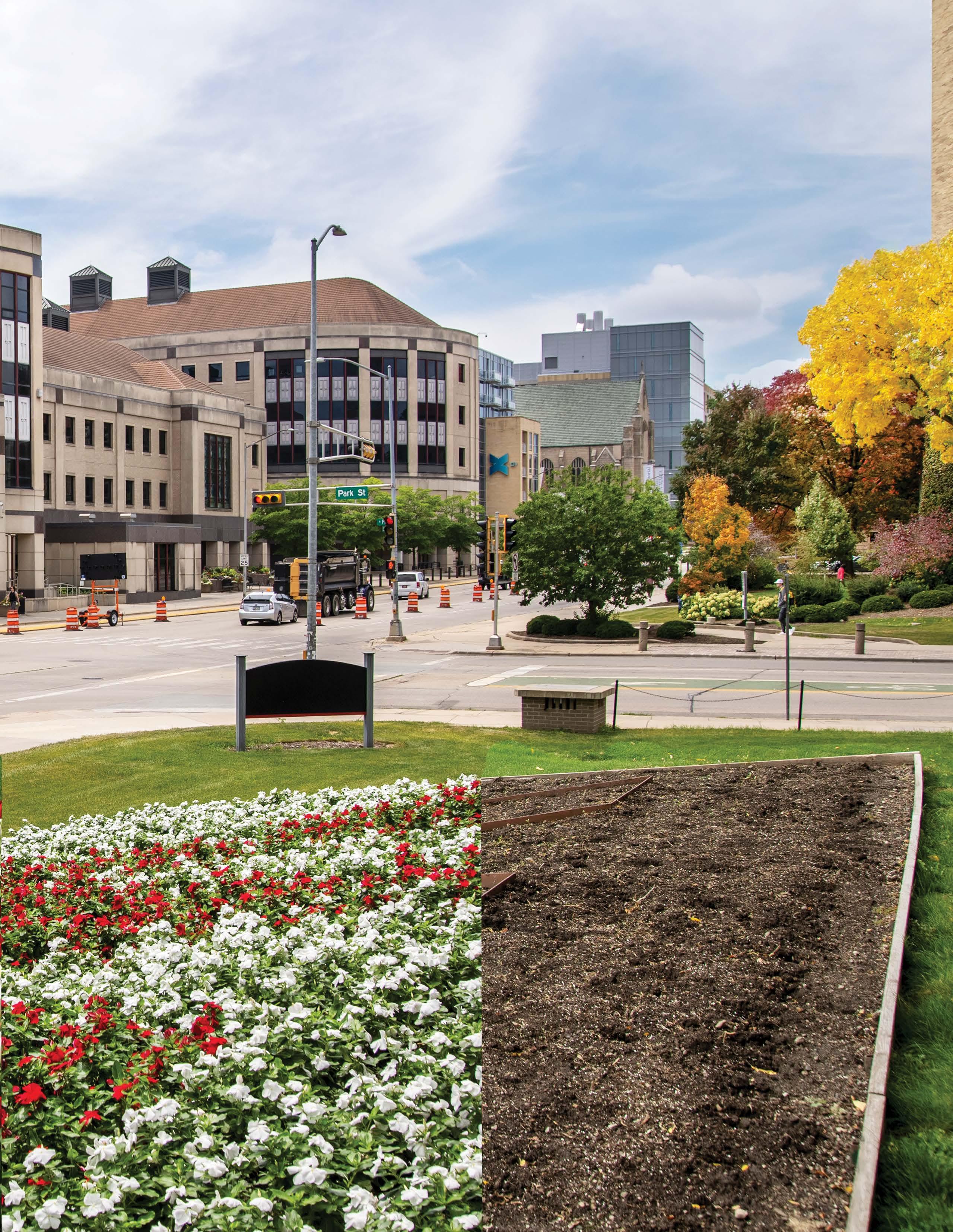 Winter, spring, summer, or fall, WSB is always in season. From the colorful spring blooms in nearby gardens to the vibrant autumn leaves of the surrounding trees, Grainger Hall is the perfect backdrop for a business education— no matter the time of year. ◀