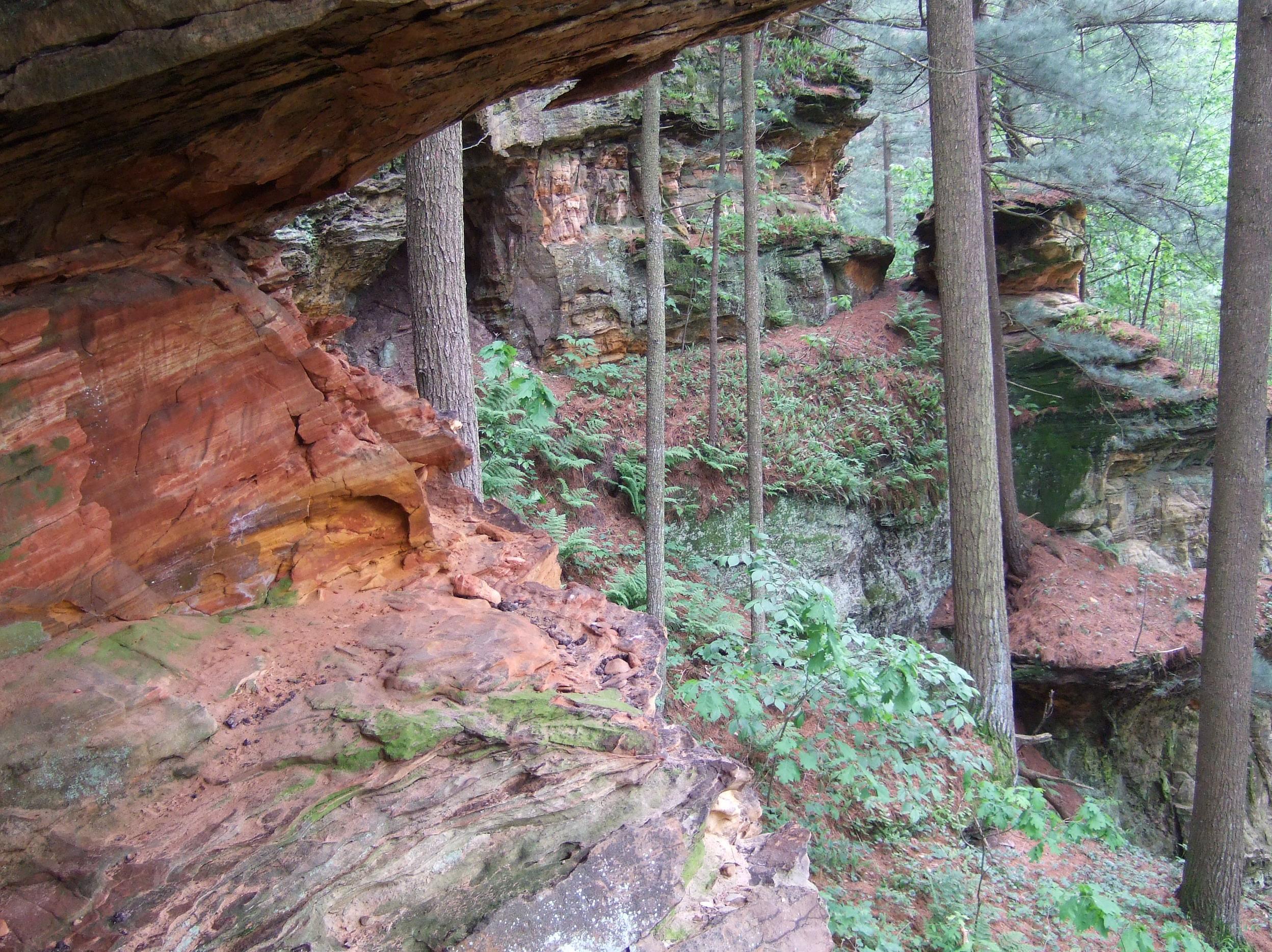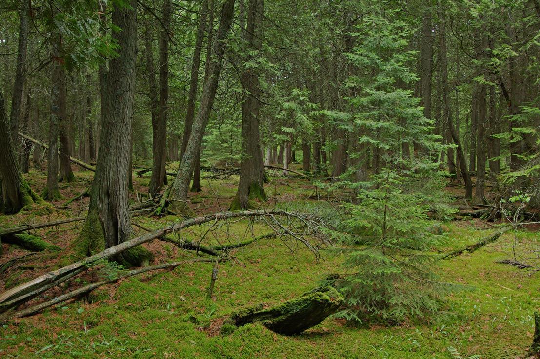 A northern mesic forest of hemlock, sugar maple, yellow birch and mountain maple lines the rocky gorge, along with abundant patches of Canada yew and a rich spring flora. There also are large white pine and red oak.