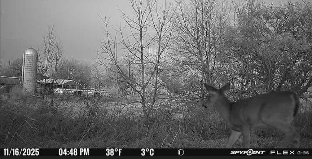 I wanted to send in a picture pulled from one of my trail cams. A few people have told me it looks fake, but it’s not. It’s a small doe with the farm in the background on the land I’m lucky enough to hunt here in Wisconsin. The picture was taken outside of Fox Lake.