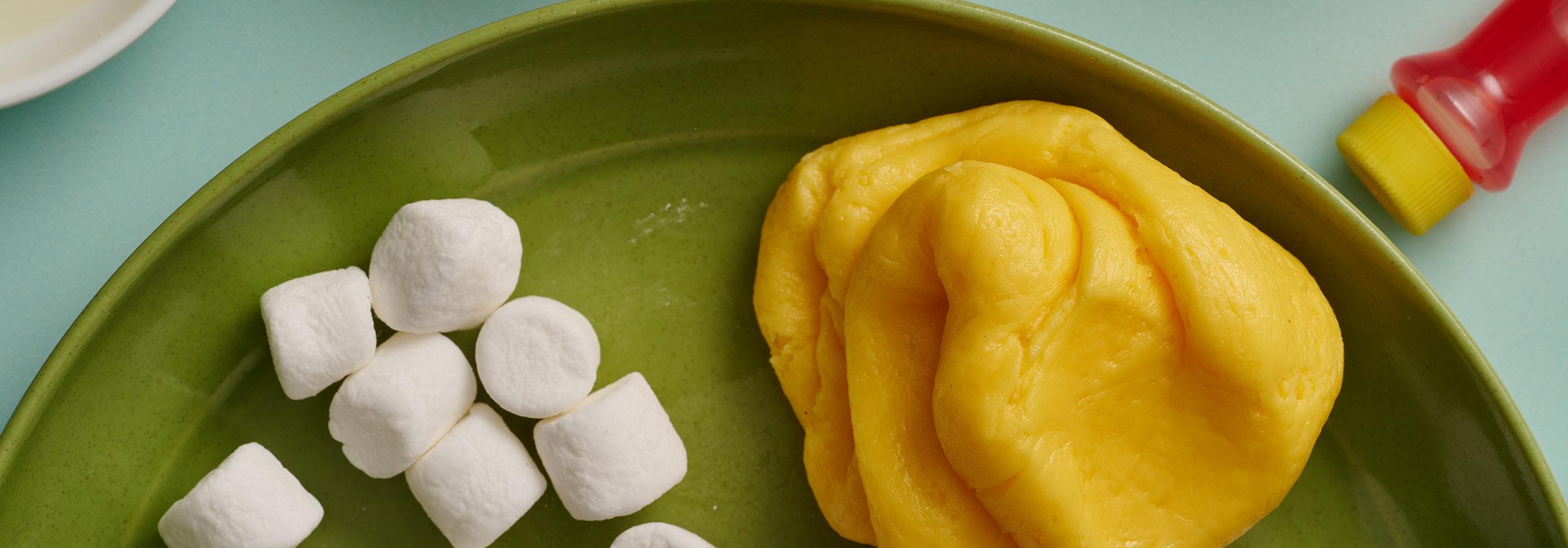 Pro tip: You might not need all the powder, or you might need a little more. If your marshmallow mixture is still sticky, add more powdered sugar and cornstarch a little at a time until you get the desired consistency. Now it’s play time! You can stretch it, blob it and let it “creep” across the plate like a real slime mold. Or eat it right up — just like slime molds gobble up their own food along the way!