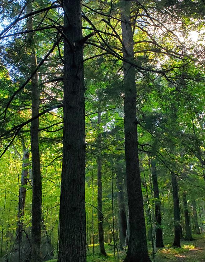 South of the river is a narrow ridge dominated by hemlock that survived the state’s cutover era, with some trees up to 250 years old. Older trees of other species like white pine and red oak are present, and forested seeps — shaded groundwater areas formed by active springs — line both sides of the ridge.