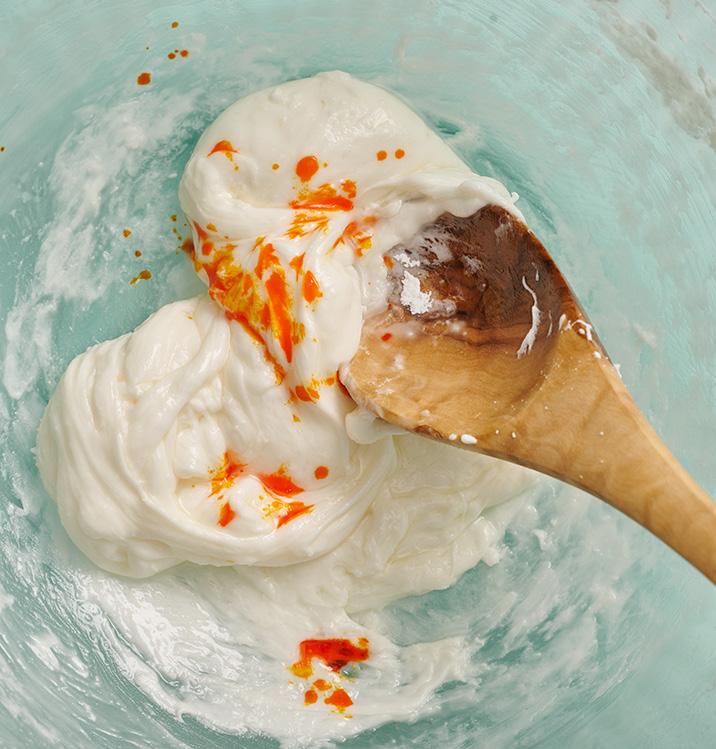 3. Color it (optional). Stir in 4-5 drops of yellow food coloring until evenly mixed.