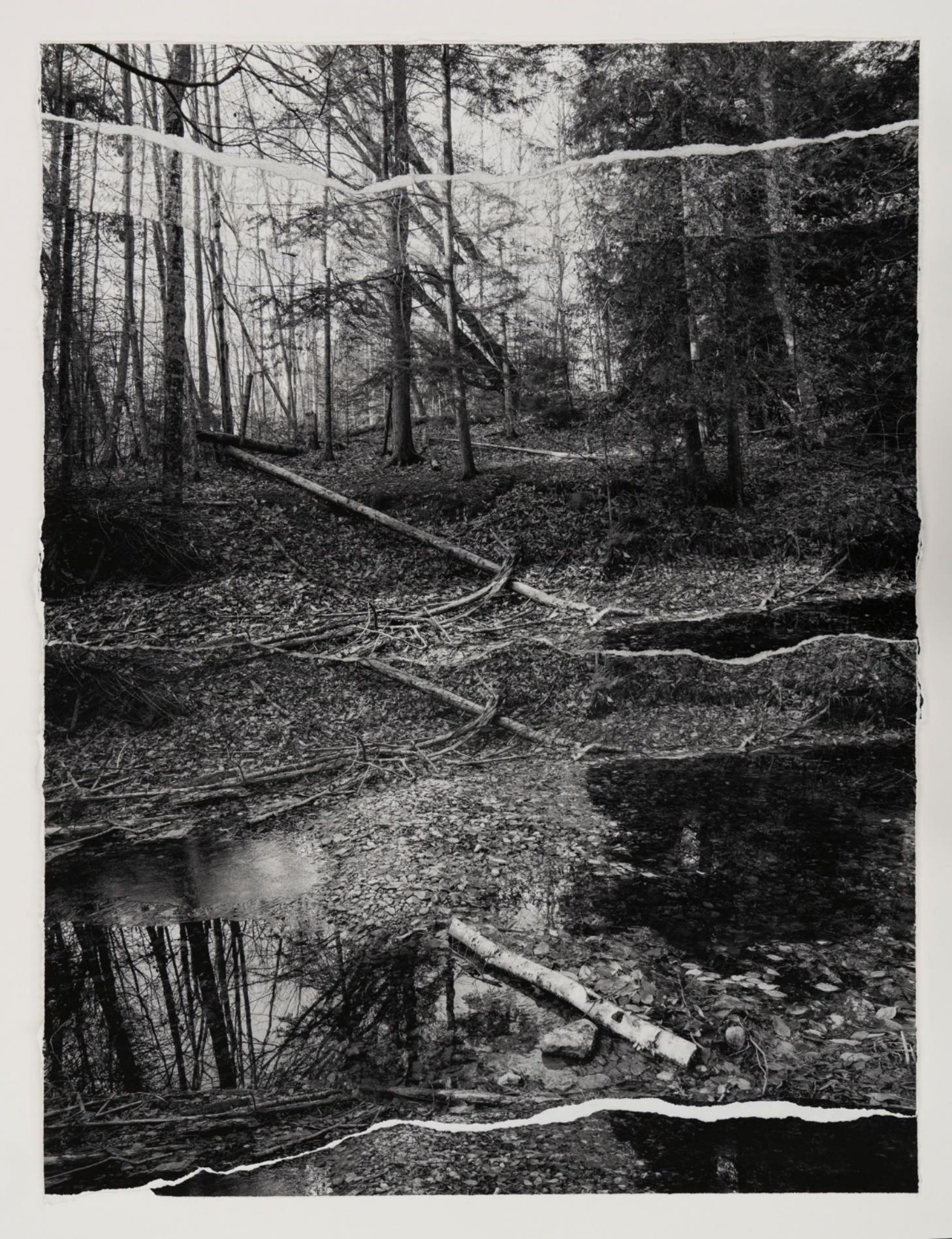 Terri Warpinski De Pere www.terriwarpinski.com from the series Land/Trust: Heins Creek Remains, 2022 Mixed Media 36 x 25 $2800