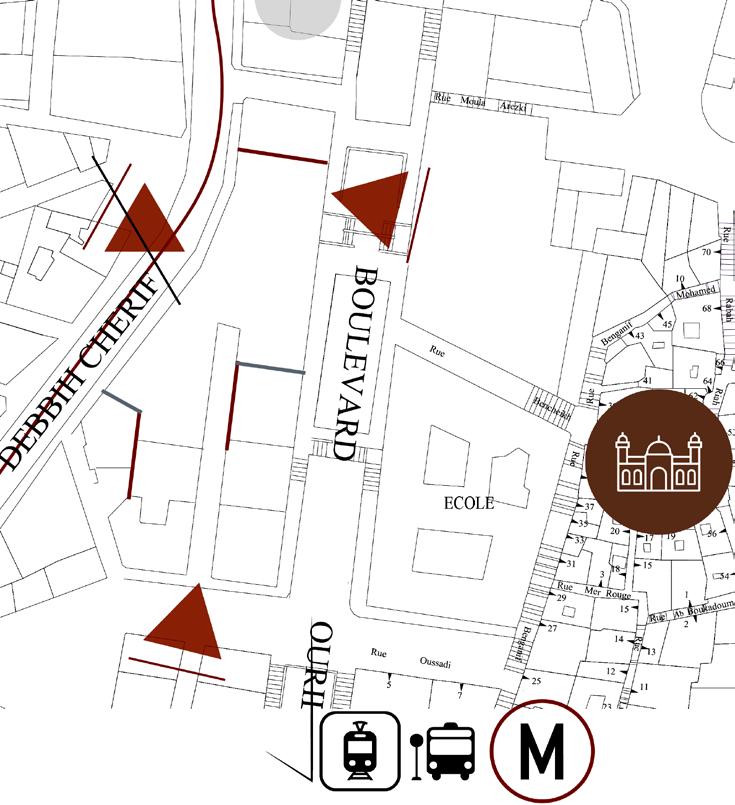 La casbah, symbole de la culture algérienne et de l’artisanat ancestral, constitue le champ de notre intervention. Notre parcelle est située à la jonction entre les bâtiments coloniaux du 19ème siècle et la médina, représentant l’architecture vernaculaire. Surplombant le boulevard Ourida Medad, le projet répondra à la double échelle du quartier et de la ville.
