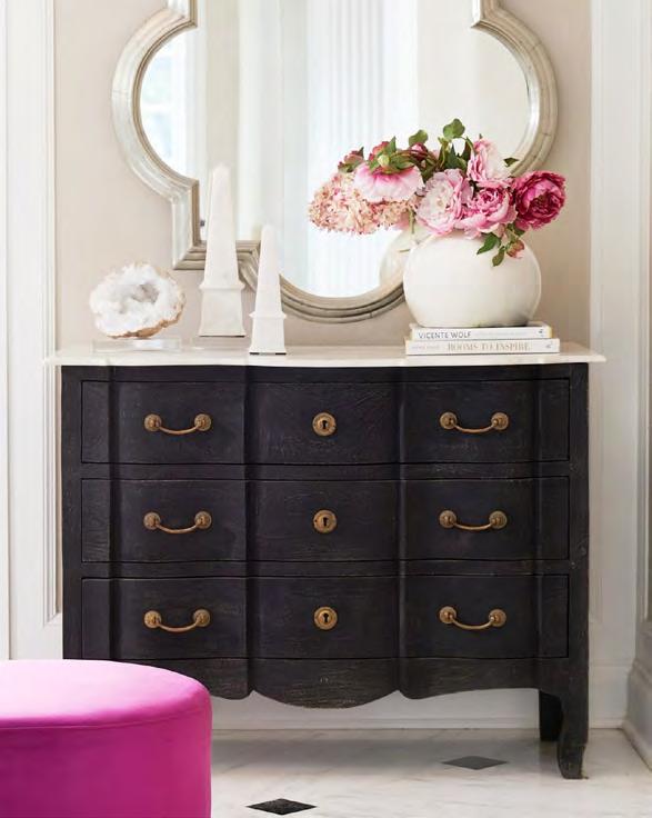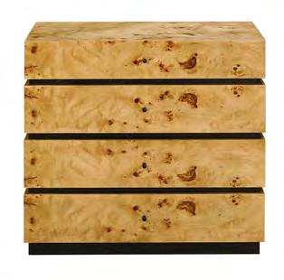 A. Harris Accent Table (26"L x 24"W x 24"H) 183-111190 $550 // B. Cylinder Burl Wood Side Table ( 18" diameter x 18"H) 110-111319 $650 // C . Burl Plank Floor Lamp (21.25"L x 21.25"W x 63.25"H) 138-111562 $1,575 // D. Small Harris Chest in Bleached ( 14"L x 20"W x 24"H) 183-111208 $750 // E. Large Harris Chest in Natural (18"D x 36"W x 34"H) 183-111192 $1,500 // F. Klein Side Table (18"D x 28"W x 28.7"H) 144-111119 $2,100 // G . Milo Chair (23"D x 22"W x 27.5"H) 144-111122 $950 H. Tucker Console Table ( 17"D x 54"W x 32"H) 144-111117 $2,475 // J. Oslo Burl Wood Veneer Desk (28"L x 50"W x 30"H) 110-111180 $2,025 // K. Louis XVI Arm Chair (25"L x 26"W x 39.5"H) 110-111117 $775 // L . St. Emillion Etagere ( 14"D x 50"W x 86"H) 110-111149 $1,975 // M. Fortnight Print ( 32"L x 42"H) 131-111128 $550 burlwood brilliance BEAUTY OF BURL: OUR HANDCRAFTED CONSOLE TABLES, STOOLS, AND MORE BRING NATURE'S BEAUTY TO YOUR HOME B G H C A D E 28 // 888.296.8574