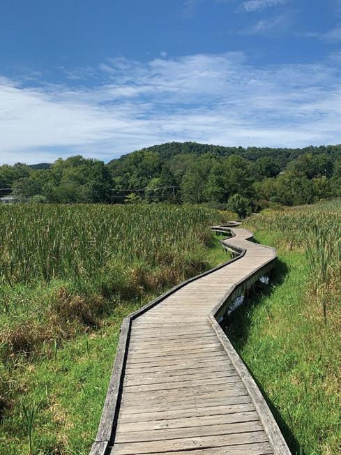 a hike across a marshy area on a long boardwalk to the Pochuck Suspension Bridge, where there may be turtles below.