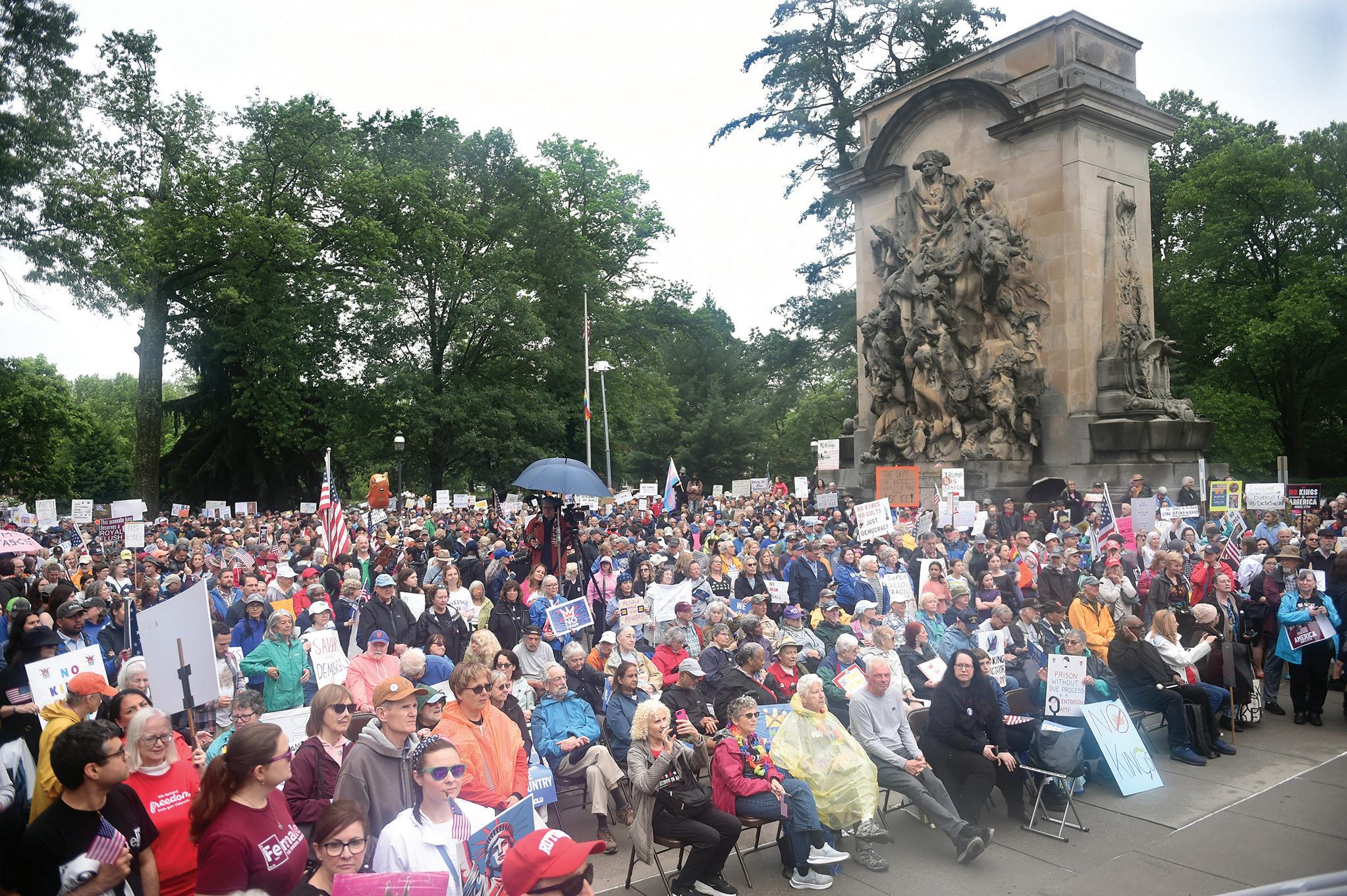 the spirit of Washington’s embrace of democracy, thousands of demonstrators overflowed Monument Park on Saturday afternoon, June 14, to join a nationwide expression of opposition to policies and actions of the Trump administration. The event featured six speakers, two musicians,