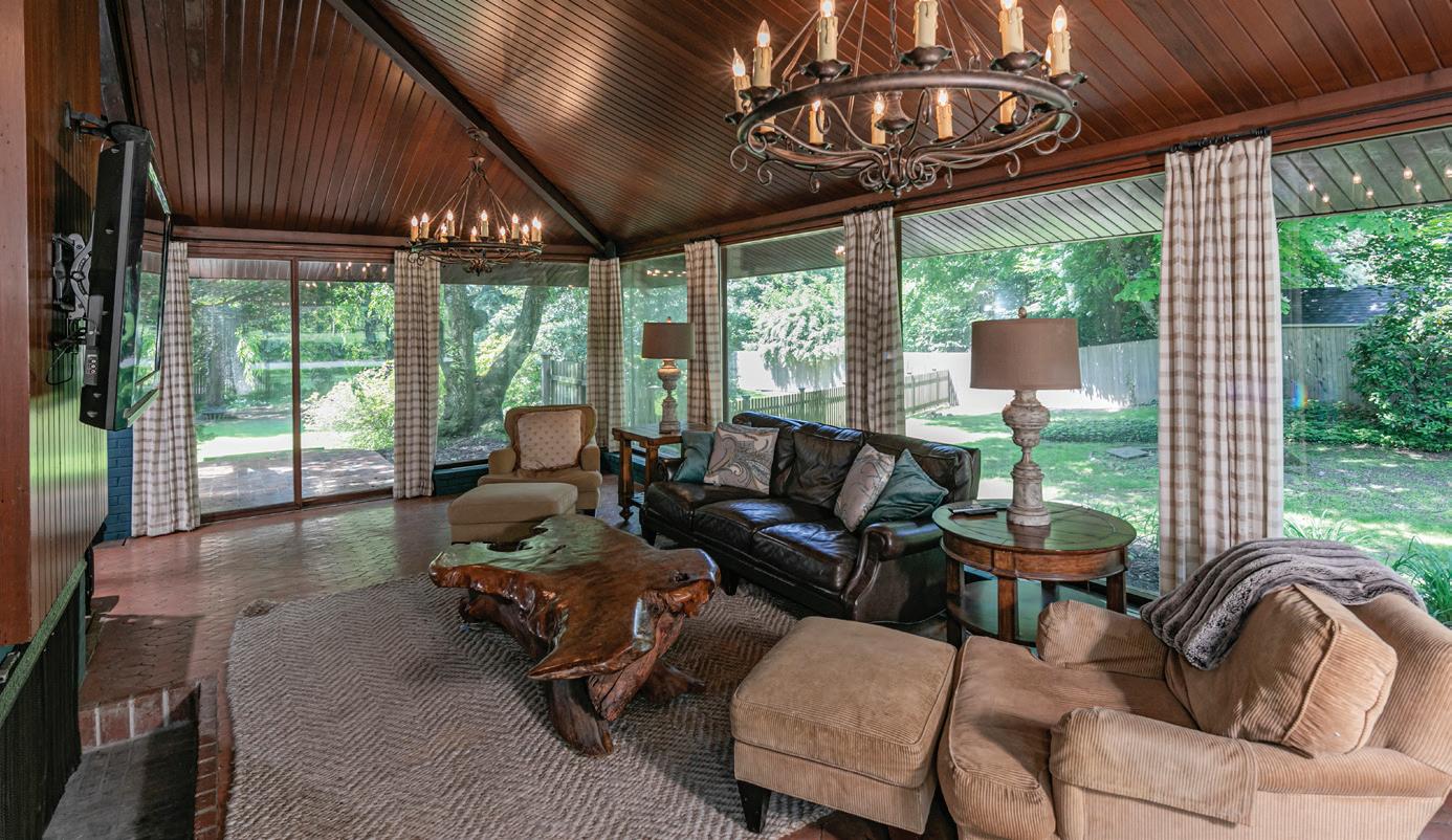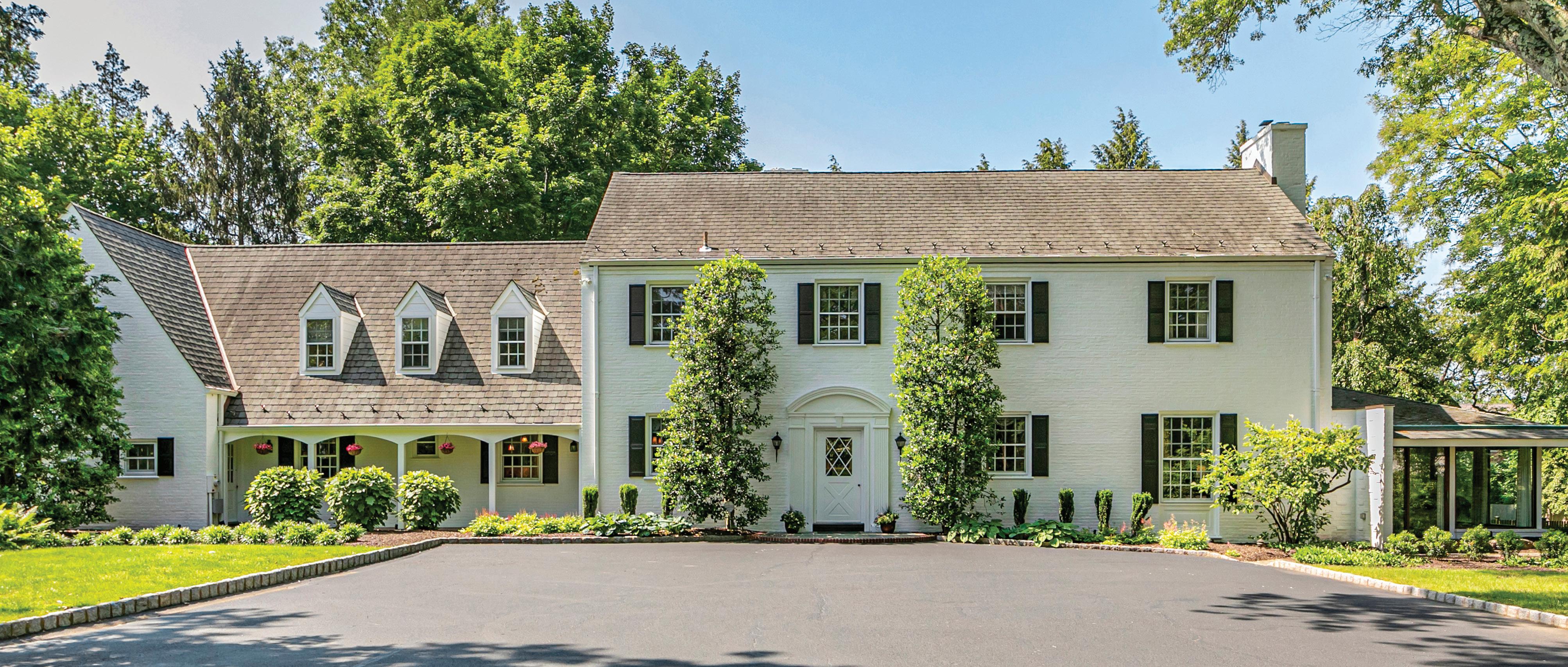 This five-bedroom, four-and-a-half-bath brick home, is situated just a mile from The Lawrenceville School within the leafy Long Acres enclave. Grand rooms have high ceilings and details you just don’t find in newer homes, including deep crown molding, charming niches and five fireplaces. The richly paneled living room is the go-to locale for entertaining, while the adjoining sunroom, wrapped in floor-to-ceiling windows, is magical in the winter and cool in the summer. The one-acre property features a sunken bluestone patio, an intimate brick patio, a parking court neatly edged with Belgian block, and beautifully landscaped garden beds, as well as a separate driveway leading to the attached three-bay garage.
