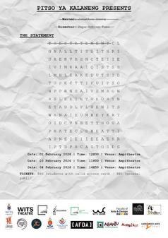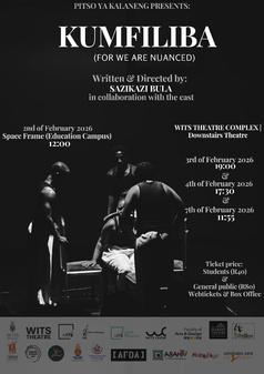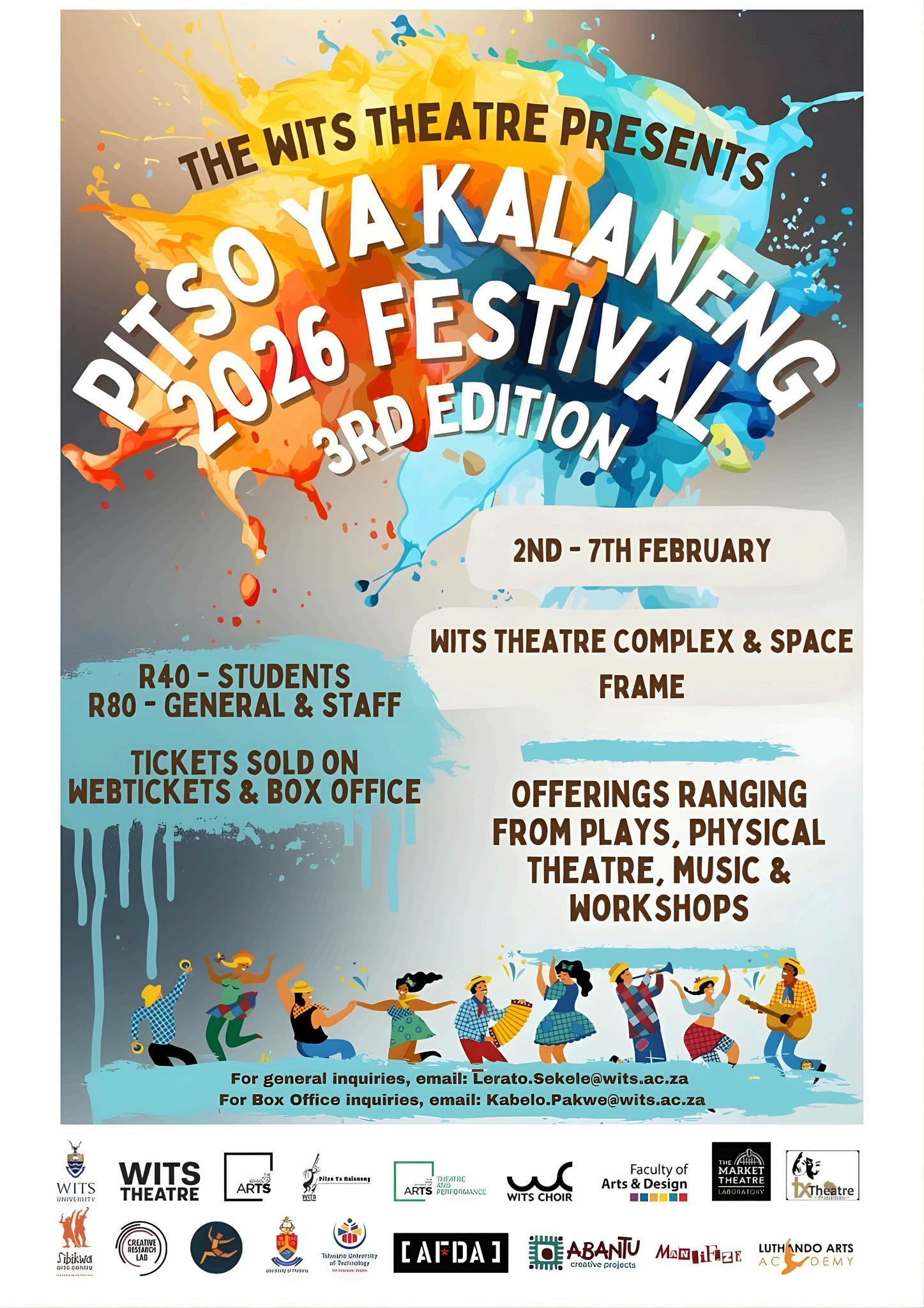 For high schools coming to attend, all schools should report to Wits University an hour before the show, park buses at the visitors’ parking spaces by the DigitalDome and may make their way to the Wits Theatre Email Lerato Sekele to arrange access – lerato.sekele@wits.ac.za