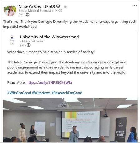 In 2026 CDTA will enter the final year of its third grant phase; the tremendous multi-phase support Carnegie has provided over nearly a decade has delivered extraordinary value, catalysing permanent appointments, research productivity, and a more representative academic community. This sustained partnership has also sparked the conceptualisation of a comprehensive DTA Tracer Study scheduled for 2026, which will track long-term career trajectories and institutional impact of CDTA-supported academics.