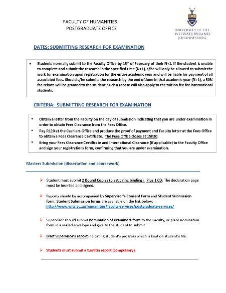 Please read this Postgraduate Handbook in conjunction with the Faculty of Humanities ‘Application to Graduation’ Document that is available on the PG Ulwazi modules.