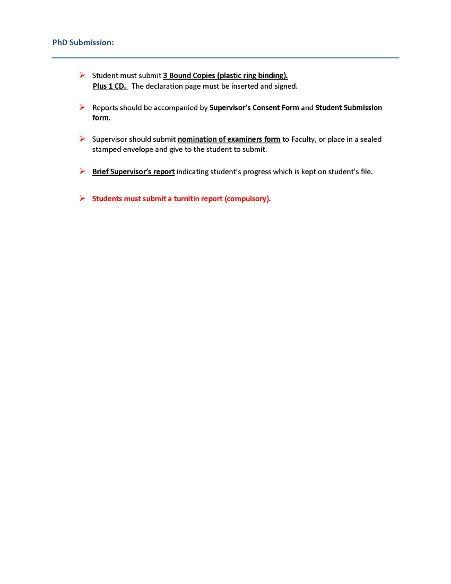 Document outlining criteria for submission of research for examination to Faculty Requirements for finalised library submission (post-examination)