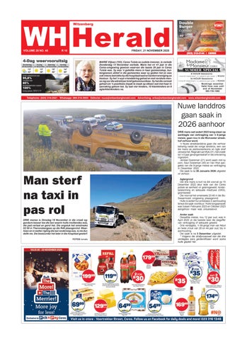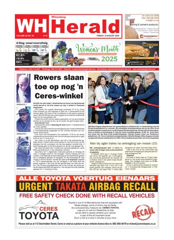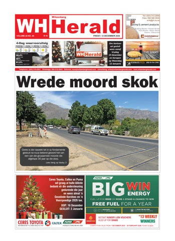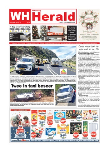 DIE koerant is in 1997 begin. Na meer as twee dekades het die Witzenberg Herald homself as een van die top dorpskoerante in Suid-Afrika gevestig. Die afgelope paar jaar is Witzenberg Herald een van die top 10 klein dorpskoerante in Suid-Afrika asook die wenner van die beste voorblaaie in 2005, 2009 en 2011. Vir die eerste keer sedert die COVID-19 pandemie toegeslaan het, het die Forum vir Gemeenskapskoerante, weer hul jaarlikse toekenningsgeleentheid gedurende Oktober 2022 in Gauteng aangebied. Die Avbob FCJ toekenningsaand is op 14 Oktober gehou waartydens gemeenskapskoerante en joernaliste vereer is vir hulle werk. Die Witzenberg Herald het in twee afdelings, Koerant van die Jaar (onafhanklik) en Beste voorblad (onafhanklik) meegeding en is in beide afdelings as die naaswenner aangewys. Agtergrond Die Witzenberg Herald is in 1997 deur wyle Piet Snyman saam met Francois en Erika Snyman begin. Oor die jare het die koerant gegroei en is dit nou onlosmaaklik deel van die Witzenberg gemeenskap. Ceres maak die grootste deel van die verspreidingarea uit met koerante wat ook op Tulbagh, Wolseley, P.A. Hamlet, Op-die-Berg en omliggende plase versprei word. Die koerant is sedert Januarie 2021 ook digitaal (vooruitbetaalbaar) beskikbaar. Indien jy wil inteken stuur boodskap na nuus@witzenbergherald.com