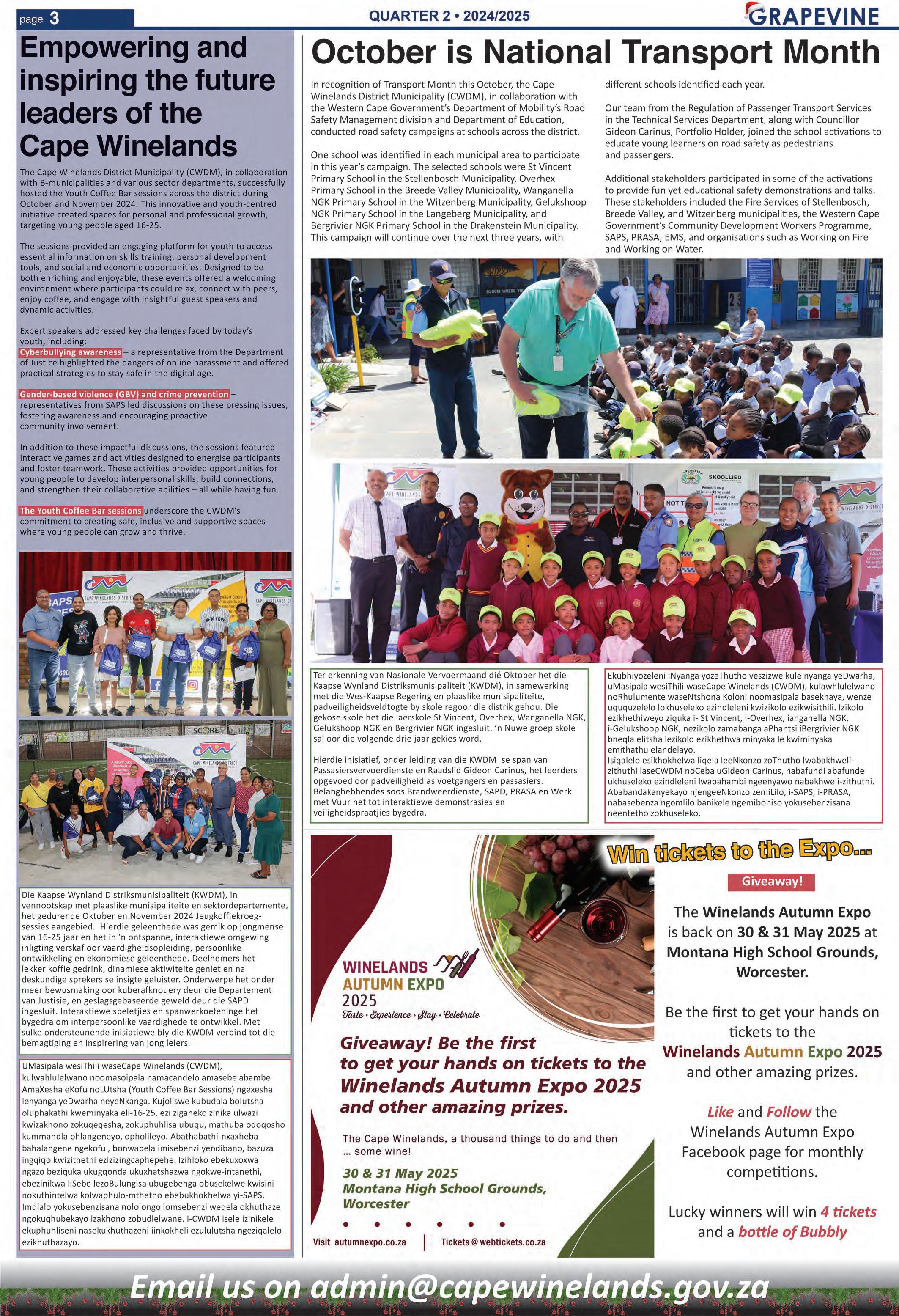 The nearly 50 Environmental Health Practitioners (EHPs) appointed as inspectors of the MHS division of the Cape Winelands District Municipality are responsible for the administration and enforcement of the Foodstuffs, Cosmetics and Disinfectants Act, 1972 (Act 54 of 1972) within the jurisdiction of the CWDM.