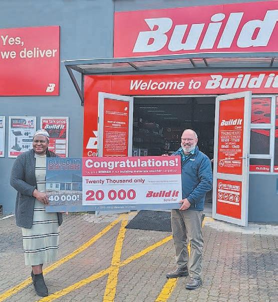 BUILD IT het onlangs ‘n kompetisie aangebied waarin kliënte boumateriaal kon wen. Die gelukkige wenner van R20 000 se boumateriaal is Lulama Mqukumba van Nduli, Ceres. Hier ontvang sy haar prys van Michael Krone, eienaar van Ceres Build It.