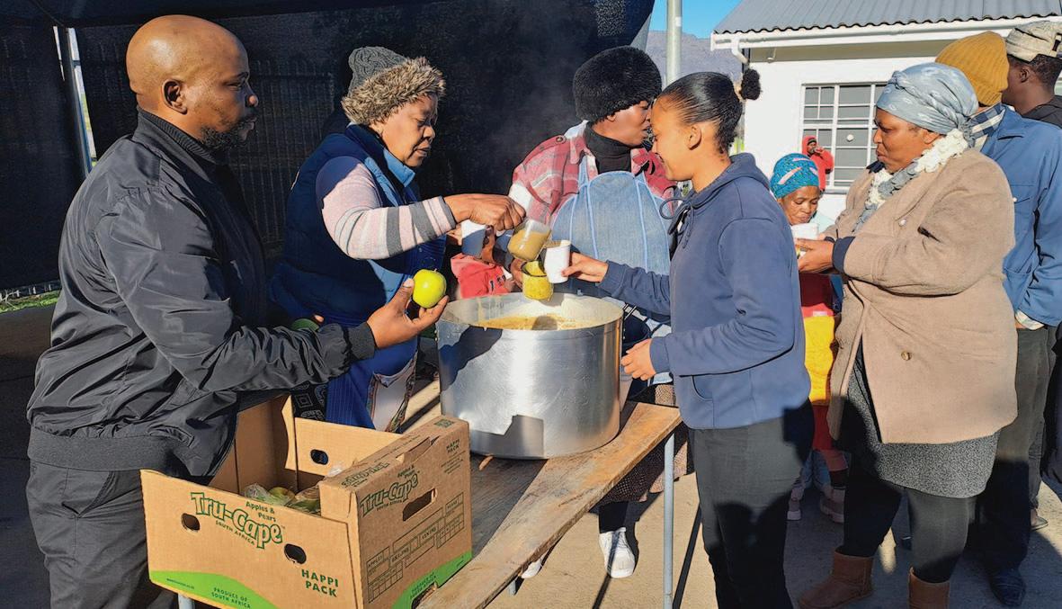 ‘n SOPKOMBUIS is gedurende Juliemaand by die Naledi Pandor kliniek in Nduli gehou. Die sopkombuis word op Maandae, Woensdae en Vrydae gehou solank as wat fondse beskikbaar is vir bestandele. Tydens Mandeladag is iets te ete aan pasiënte gegee wat kroniese medikasie benodig by die klinieke. Hier is raadslid Andile Gili saam met ‘n groep helpers besig by die sopkombuis. * Die organiseerders bedank Tru-Cape vir die appels wat hulle geskenk het. Indien daar nog besighede of organisasies is wat by die inisiatief betrokke wil raak, kan hulle vir Andile skakel by 073-6258-563 of ‘n e-pos stuur na agili@witzenberg.gov.za