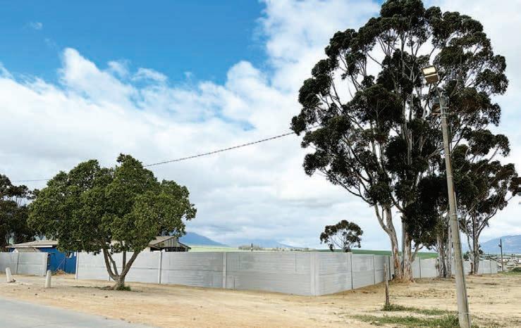 DIE Witzenberg munisipaliteit het die begin van Augustusmaand (foto bo) begin om ‘n nuwe beton omheining rondom hulle Tulbagh munisipale stoor op te rig. Die ou heinings is verwyder en die opslaangeboue, wat deur vandale beskadig is, is gesloop. Die koste van die betonheining beloop ±R2.9 miljoen en is gou voltooi (foto onder).