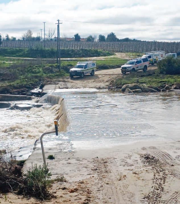DIE twee laagwaterbruggies op Ceres is sedert verlede Woensdagoggend gesluit vir verkeer. Die Dwarsrivier het ‘n week gelede begin afkom en plek-plek sy walle oorstroom. Teen Dinsdag het die rivier al baie gesak maar steeds oor die pad geloop. * ILeaf en Hortec se weerstasies het vanaf 1-16 Julie (16:00) die volgende reënvalsyfers gemeet: 350.6 mm vir die Warm Bokkeveld, by Lakenvlei (Bo-Swaarmoed) is 236.9mm gemeet, 249.8mm by Bronaar, 304.1mm by Sterkwater en 292.1mm by Romansrivier. ** In Junie 2023 is meer as 430mm in die Warm Bokkeveld gemeet. Volgens statistieke van die Witzenberg munisipaliteit wat sedert 1960 noukeurig bygehou word, het die meeste reën in 1977 geval. Ander jare waar daar baie reën gemeet is, was 1984, 1996 en in 2023.