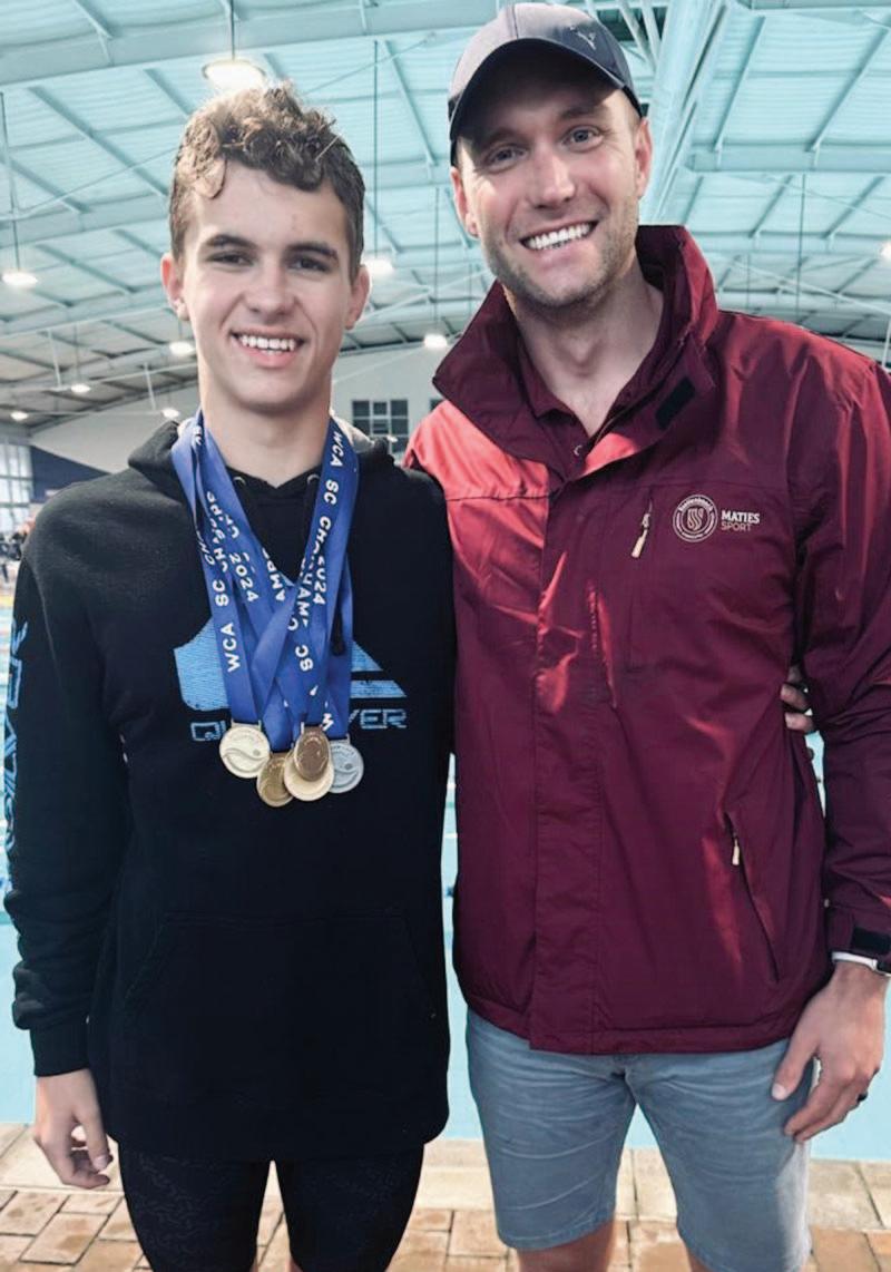 ERIC Kotzé (14), ‘n leerder van Paul Roos, het onlangs weer ‘n paar swemrekords laat spat. Eric (links) het vier S.A. rekords en twee WP swemrekords gebreek tydens die WP kortbad kampioenskappe wat van 4-7 Julie aangebied is. Hy het vier goue en een silwer medaljes verower in die 14-15 jaar ouderdomsgroep asook twee silwer medaljes in die senior mansafdeling. * Eric se ma, Elizabeth, is ‘n oudleerder van Laerskool Gericke en Charlie Hofmeyr en die dogter van Esmé Schreuder van Ceres.