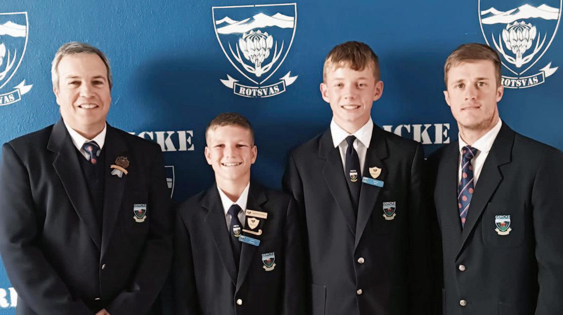 TWEE leerders van Laerskool Gericke op Ceres, Zachary Watt en Ruben Giliomee, is onderskeidelik in die Boland o/13 Akademiespan en die o/13 Cravenweekspan opgeneem. VLNR: Sjoerd Selders (skoolhoof), Ruben Giliomee, Zachary Watt en Günther von Bentheim (Laerskool Gericke se o/13A afrigter).
