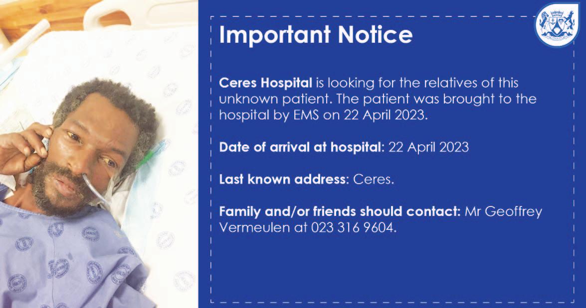 IS jy die Witzenbergstreek se volgende Landbouwerker van die Jaar? Alle landbouwerkers mag aan die kompetisie deelneem en is ‘n persoon wat deel vorm van en ’n bydrae tot die boerdery lewer.Die streeksfunksie vind plaas op 27 Julie 2023. Vir navrae skakel Edna Nigrini (023) 317-0983 of e-pos na: edna@kbos.co.za