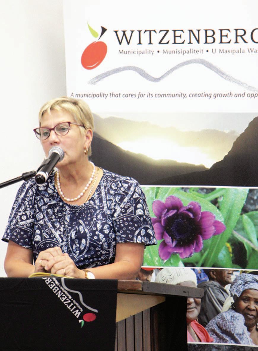 Minister Marais het ‘n kort boodskap gelewer en ondermeer gesê die Witzenberg gemeenskap kan trots wees op die biblioteek, dit geniet en dit mooi oppas. Die biblioteek is teen ‘n koste van meer as R3 miljoen herstel.
