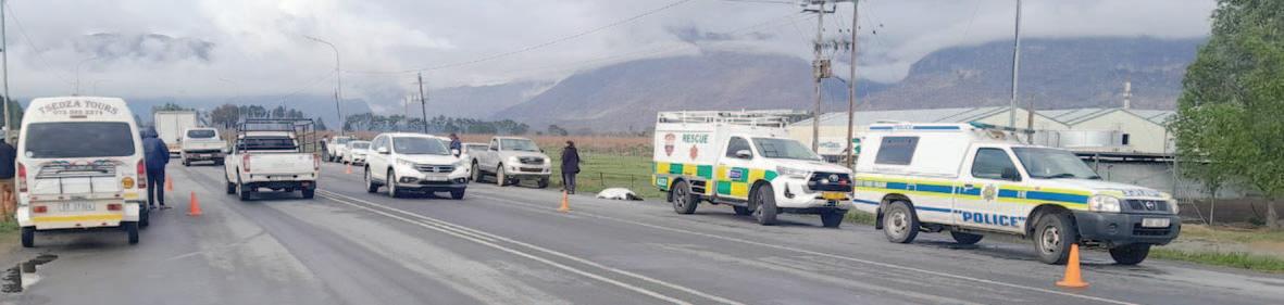 ‘n VOETGANGER het op 27 Augustus gesterf toe ‘n Nissan Sentra hom getref het. Volgens die polisie het die voorval omstreeks 20:30 naby Anna’s tussen Hamlet en Bella Vista plaasgevind. Volgens inligting was die bestuurder, Abré Boer van Bella Vista, alleen in die motor en onderweg van P.A. Hamlet in die rigting van Ceres. * Enige iemand met meer inligting oor die slagoffer, net bekend as Nsidisi, kan die speurders skakel by (023) 313-3133.