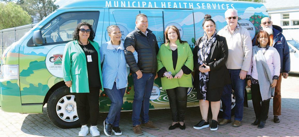 THE CWDM’s Municipal Health Services (MHS) are excited to announce the arrival of their branded minibus, which will be used for school and community engagements. The MHS’s Environmental Health practitioners are responsible for nine functions that ensure the safety of the environments where we live, play, and work. One method of achieving this is through education and awareness programmes presented at schools, farms, factories and other manufacturing plants. To enhance understanding in our district of the important role MHS plays in society and to support existing programmes, the team has designed easy-tounderstand images that describe their functions. FLTR: Theresa Davids (CWDM Chief Environmental Health practitioner), cllr. Xoliswa Mdemka (CWDM portfolio holder: Municipal Health Services), Rhian van Wyk (Acting Executive Director: Corporate Services), Fiona du Raan-Groenewald (CWDM Chief Financial Officer), ald.(dr.) Elna von Schlicht (CWDM Executive Mayor), Francois van Eck (CWDM Executive Director: Technical Services), Tersia Booys (CWDM Environmental Health practitioner) and Randall Humphreys (CWDM Deputy Director: Municipal Health Services).
