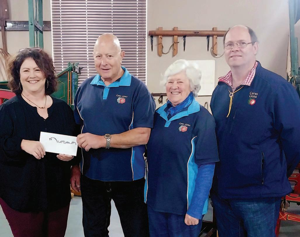 DIE Beheerraad van die Togryers museum bedank Ceres Lions wat weer met hul heerlike kerrie en rys bredie, fondse vir die museum ingesamel het. Die museum se beheerraad wil hul dank uitspreek teenoor die Ceres Lions vir hierdie wonderlike inisiatief asook elke persoon wat ‘n kaartjie gekoop het. VLNR: Bertdene Laubscher (Togryers museum) en Lionslede Humberto Cardoso sr., Maureen Petersen en Wynand Kloppers.