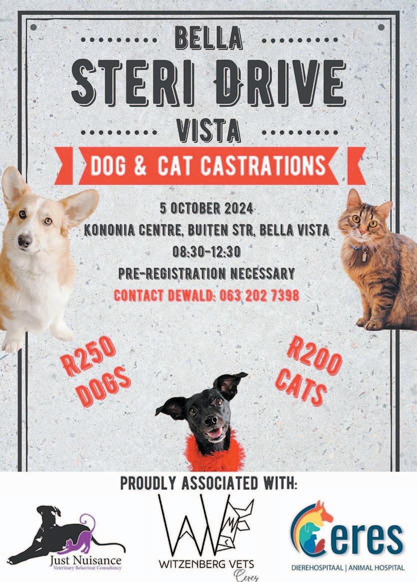 Die Witzenberg Herald word uitgegee vir die eienaars, Snyman, Voortrekkerstraat 17D, Ceres en gedruk deur Novus Print, Lynxstraat 5, Paarden Eiland. Geen advertensie/redaksionele materiaal mag sonder die verlof van die eienaars volgens Art. 12 (7) Wet op Outeursreg 1978 gereproduseer word nie.
