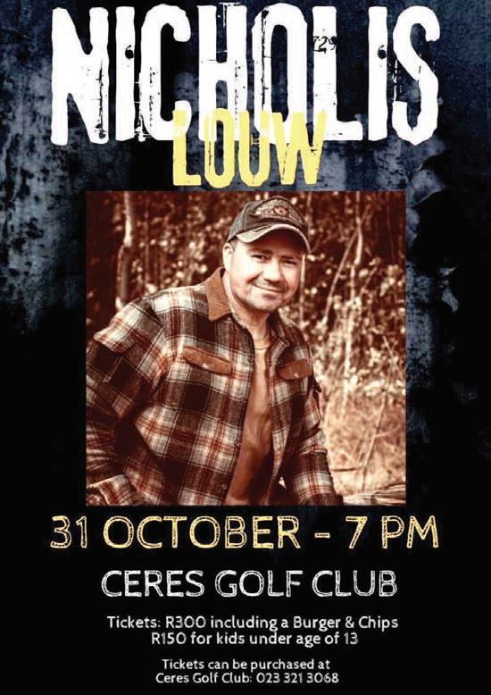 ● Ceres Tourism Trash Bash: Clean-up event on Friday 27 September from 14:00 to 16:30. Meet at the Ceres Tourism office. Black bags, water and gloves will be supplied.